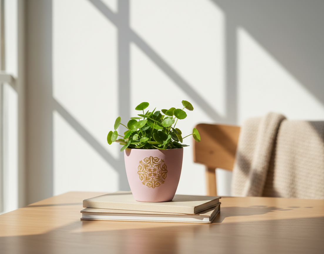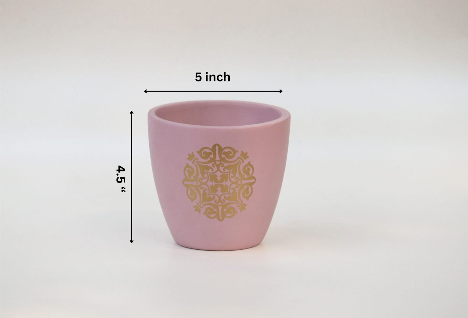 Add a soft and elegant accent to your décor with the Pink Ornamental Terracotta Pot. Designed with a gentle pastel pink finish and an intricate gold ornamental motif, this planter brings a refined and stylish aesthetic to modern interiors.