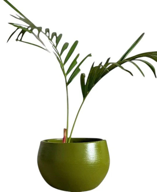 Modern Olive Green Ceramic Planter by Gardenia features a smooth rounded bowl design with a glossy olive green finish, perfect for adding a fresh natural touch to modern indoor spaces.